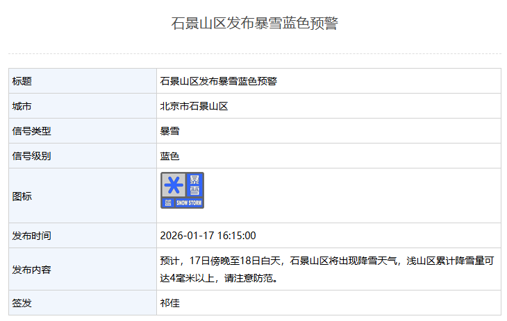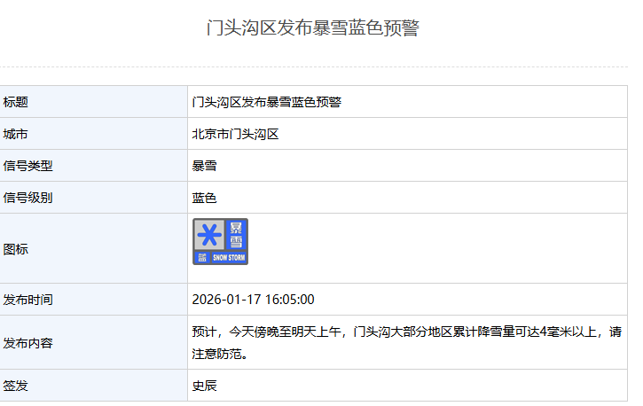 03月 06 2026 0 28圈下载-北京多区发布暴雪蓝色预警 xiaoqiao 2026-03-06 意甲 15 新京报讯 据北京市气象局网站消息,目前,北京房山、丰台、昌平、门头沟等区已发布暴雪蓝色预警。详情如下:房山区发布暴雪蓝色预警丰台区发布暴雪蓝色预警昌平区发布暴雪蓝色预警门头沟区发布暴雪蓝色预警石景山区发布暴雪蓝色预警编辑 辛婧